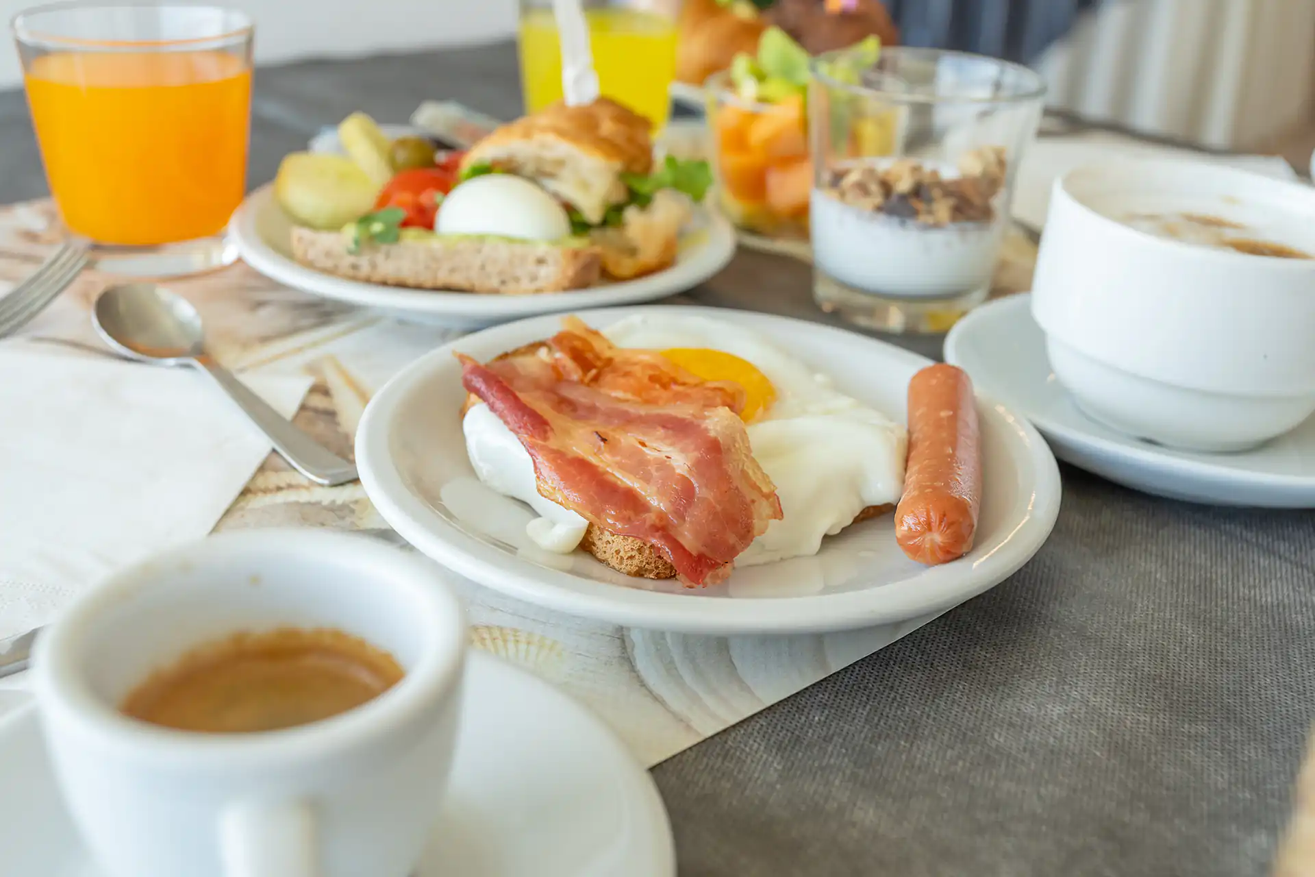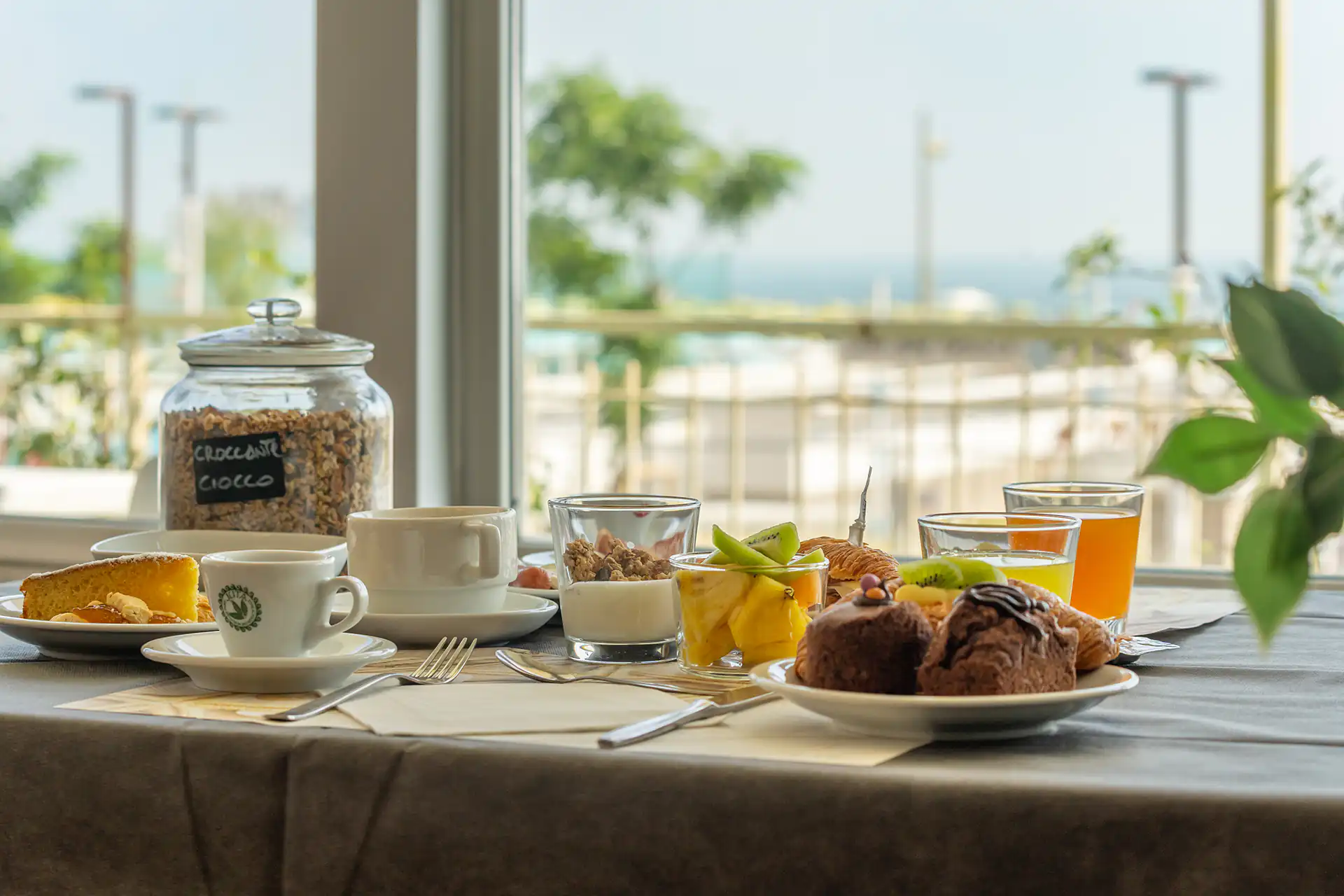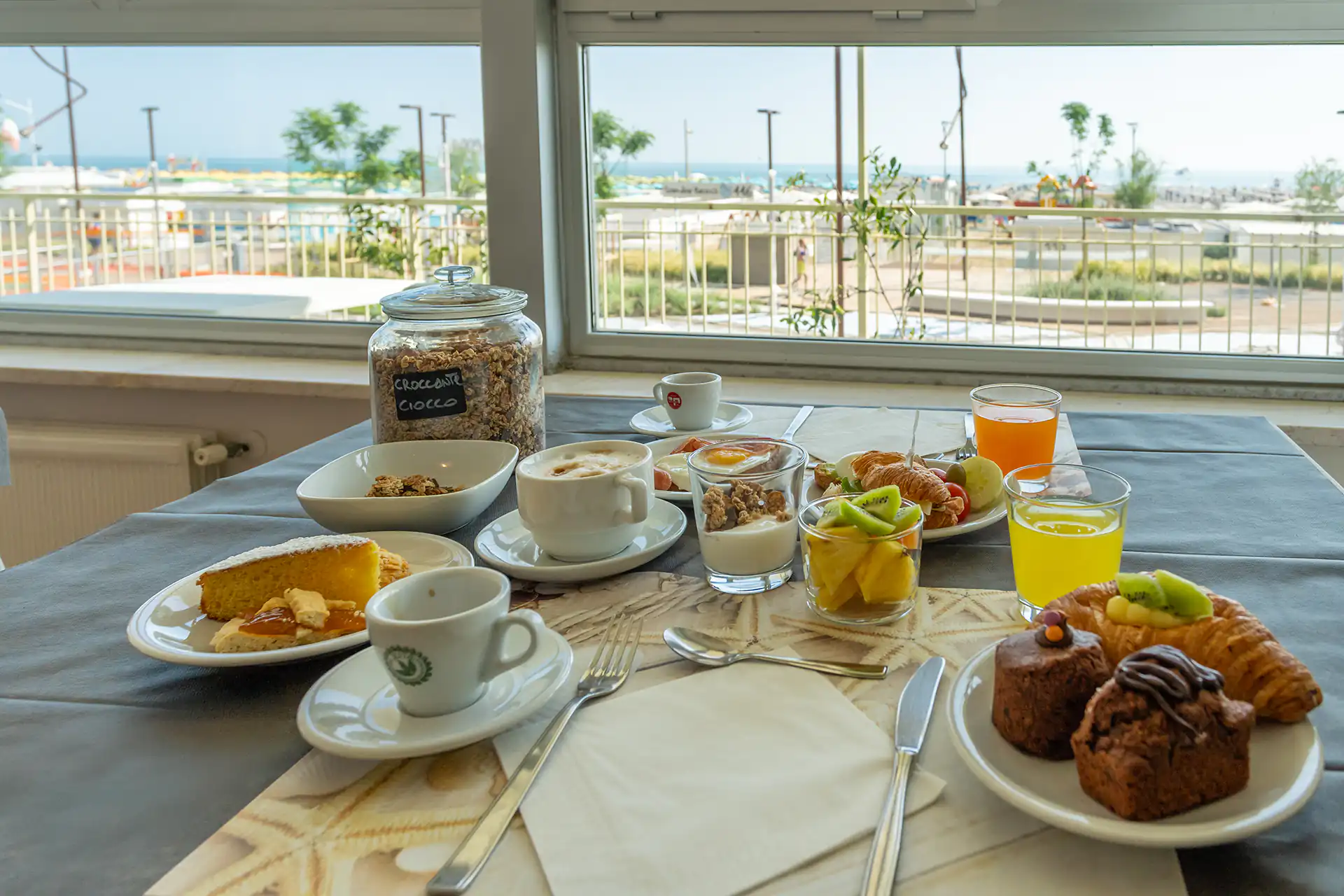 La colazione a buffet dell’hotel è un vero e proprio piacere per il palato, con una vasta scelta di opzioni dolci e salate per iniziare al meglio la giornata. Potrai gustare croissant fragranti, brioches morbide, biscotti fatti in casa e torte fresche, accompagnate da marmellate, miele e nutella. Per chi preferisce il salato, ci sono affettati, formaggi, uova sode, pane fresco, focacce e toast. Inoltre, sono disponibili yogurt, frutta fresca e cereali per una colazione equilibrata e gustosa. Tutto è preparato con cura per offrirti un momento di relax e energia, perfetto per affrontare una giornata di mare, relax o avventure!